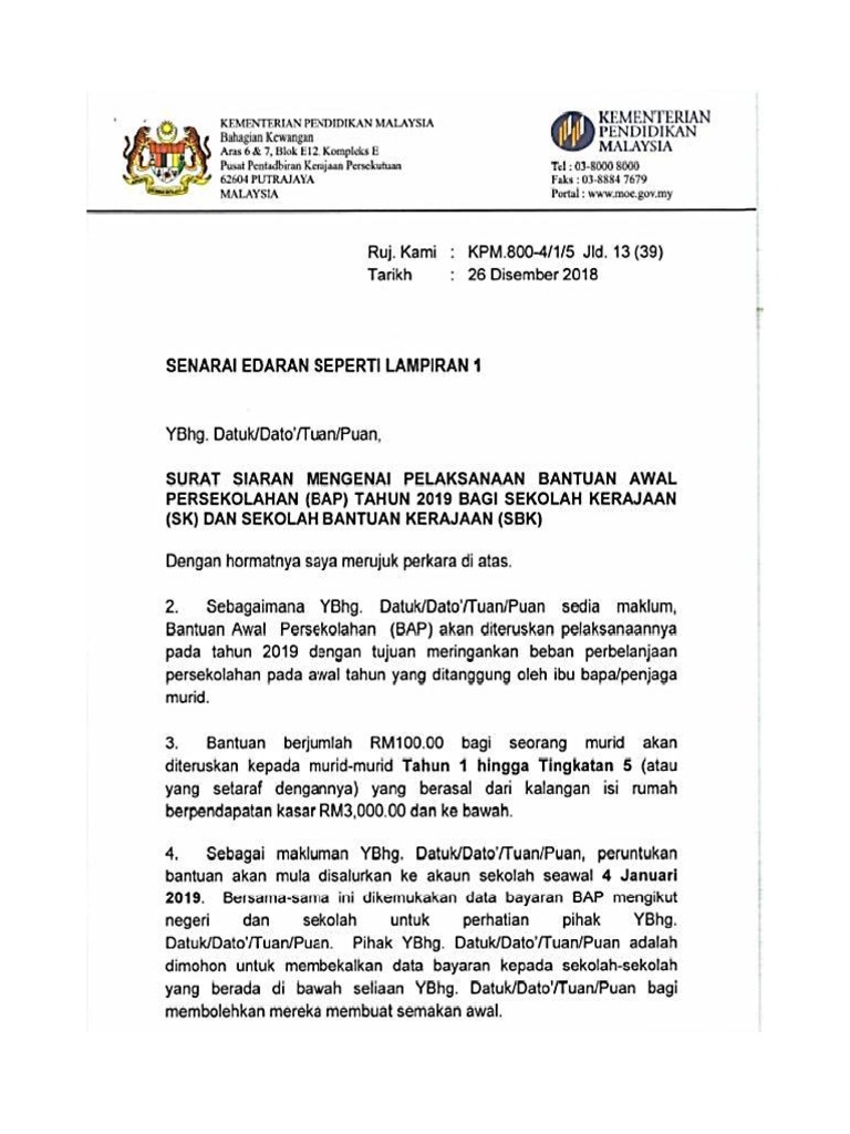 . Surat Siaran Kementerian Pendidikan Malaysia Bil. Surat siaran ini dikeluarkan bertujuan untuk memaklumkan kepada pihak sekolah tentang panduan dan langkah-langkah yang boleh diambil bagi menangani isu beg berat murid. Surat Siaran Bil4 Kpm Linus1pdf.